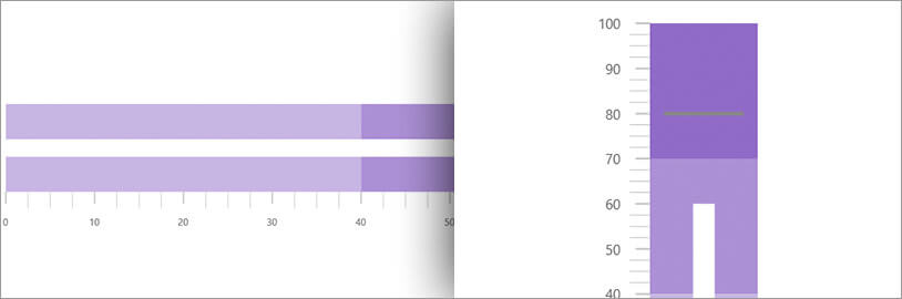 Deliver a simple, concise view of key performance indicators (KPI) to users. Present progress towards goals and good/better/best ranges in minimal horizontal or vertical space.